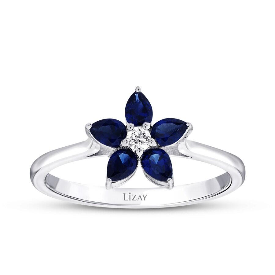 0.56 Karat Pırlanta Damla Taşlı Safir Çiçek Yüzük