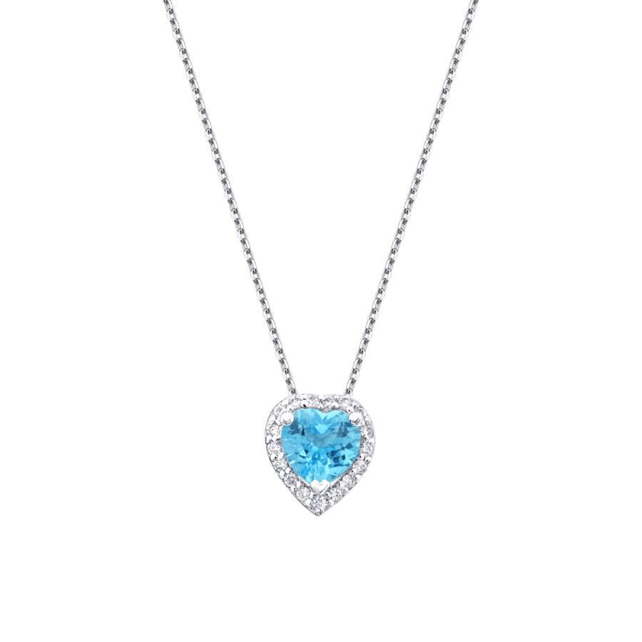 0.61 Karat Pırlanta Blue Topaz Kalp Kolye