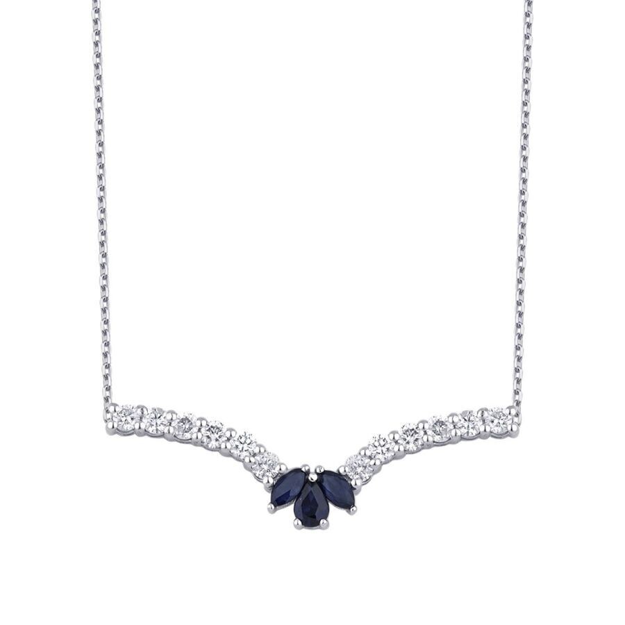 0.91 Karat Pırlanta Safir Lotus Kolye