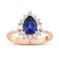 Bu Pırlanta Safir Yüzük, elegan sanatın ifadesini taşıyor. İhtişamlı safir taşı ve zarif baget kesim pırlantalar, bu yüzüğü benzersiz kılıyor. Bu yüzük, herhangi bir kıyafete zarafet ve şıklık katacak.