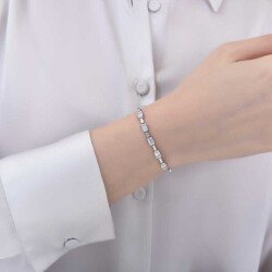 Bu pırlanta baget bileklik, ince zarafetiyle sizi büyüleyecek. Eşsiz tasarımı ve parlaklığıyla her anınıza şıklık katacak bir aksesuar. Kendinizi özel hissetmek ve zarafetinizi ön plana çıkarmak için ideal bir seçim.