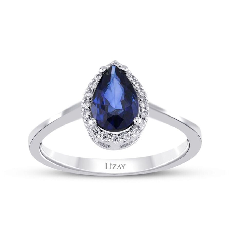0.78 Karat Pırlanta Damla Safir Yüzük