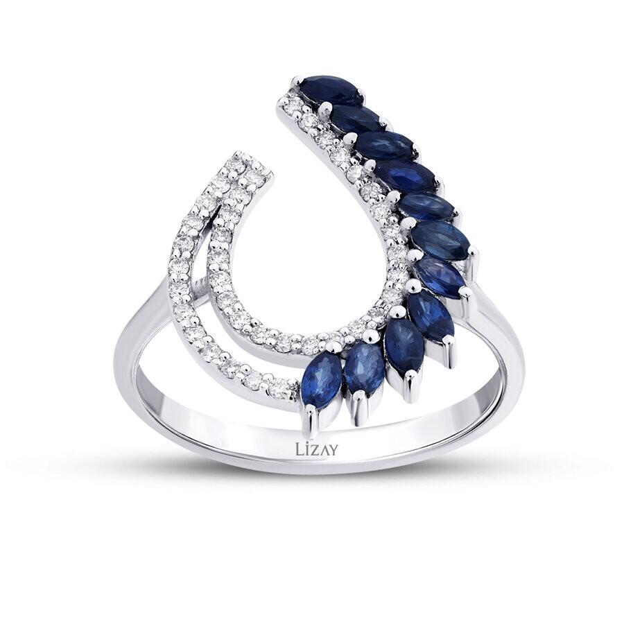 0.81 Karat Pırlanta Markiz Taşlı Safir Trend Yüzük