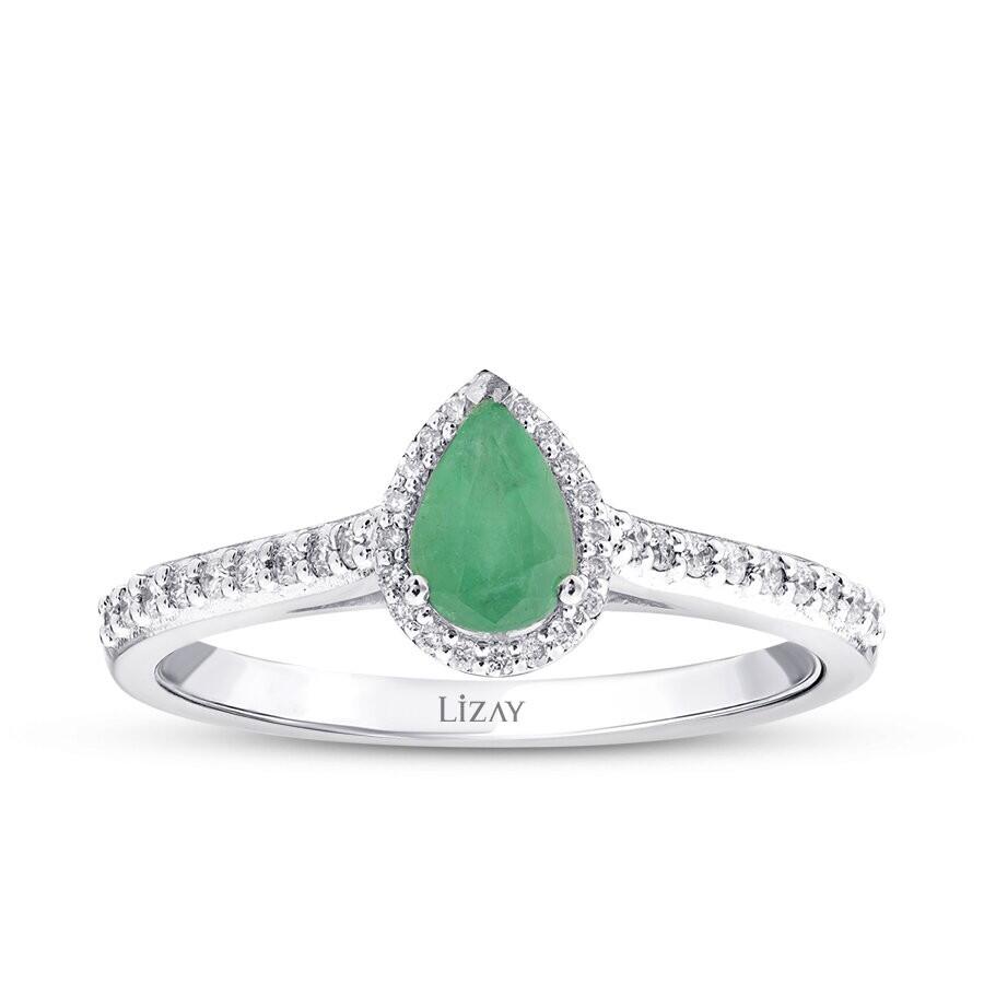 0.59 Karat Pırlanta Damla Zümrüt Yüzük