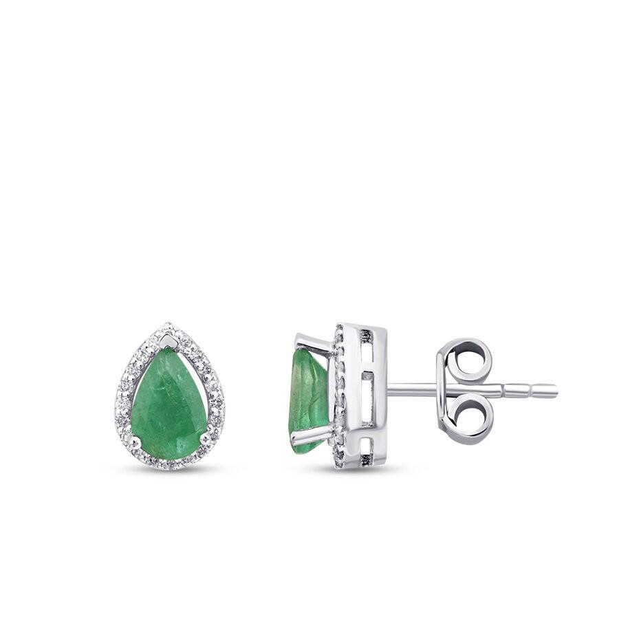 0.92 Karat Pırlanta Damla Taşlı Zümrüt Küpe