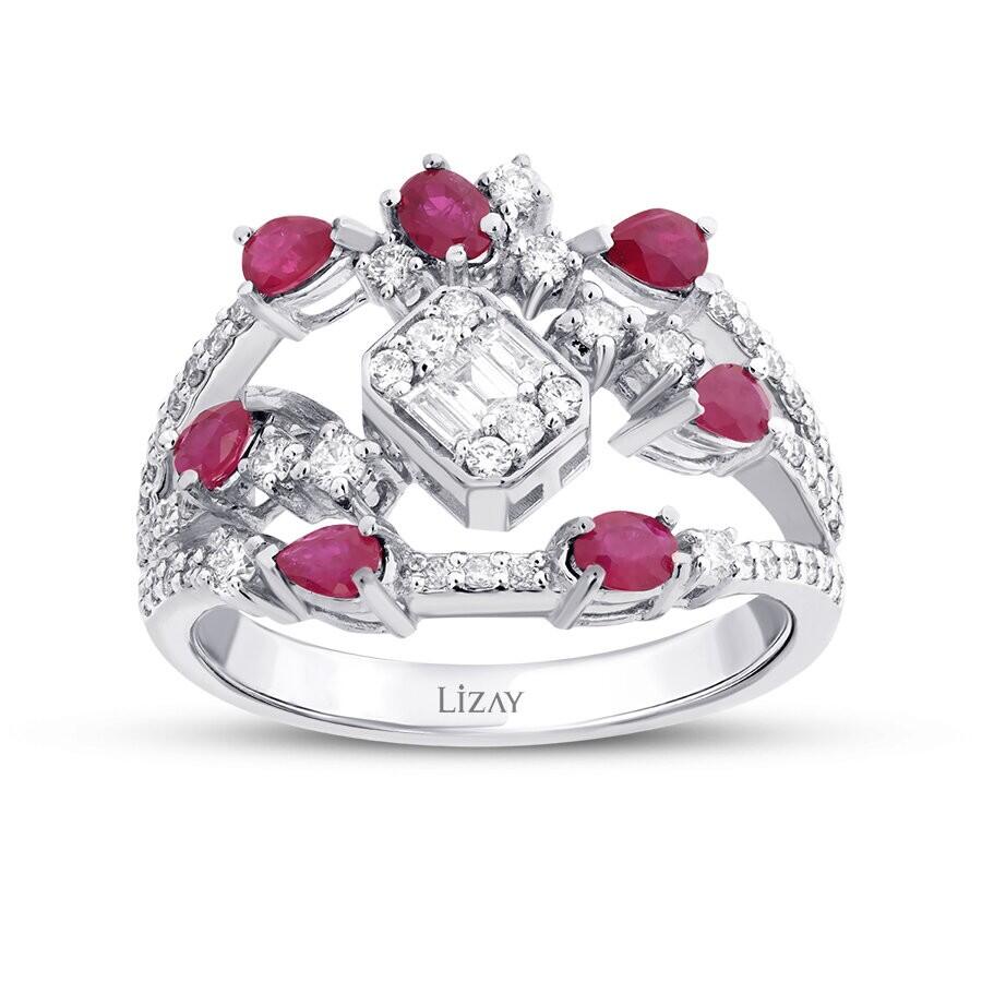 1.12 Karat Pırlanta Damla Taşlı Yakut Yüzük