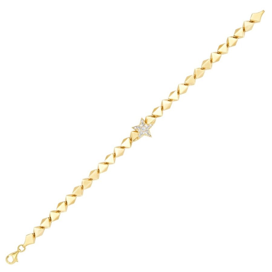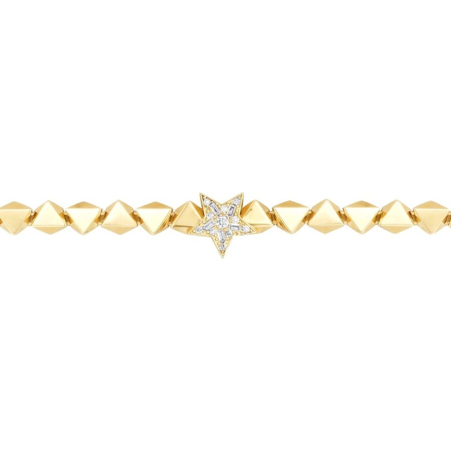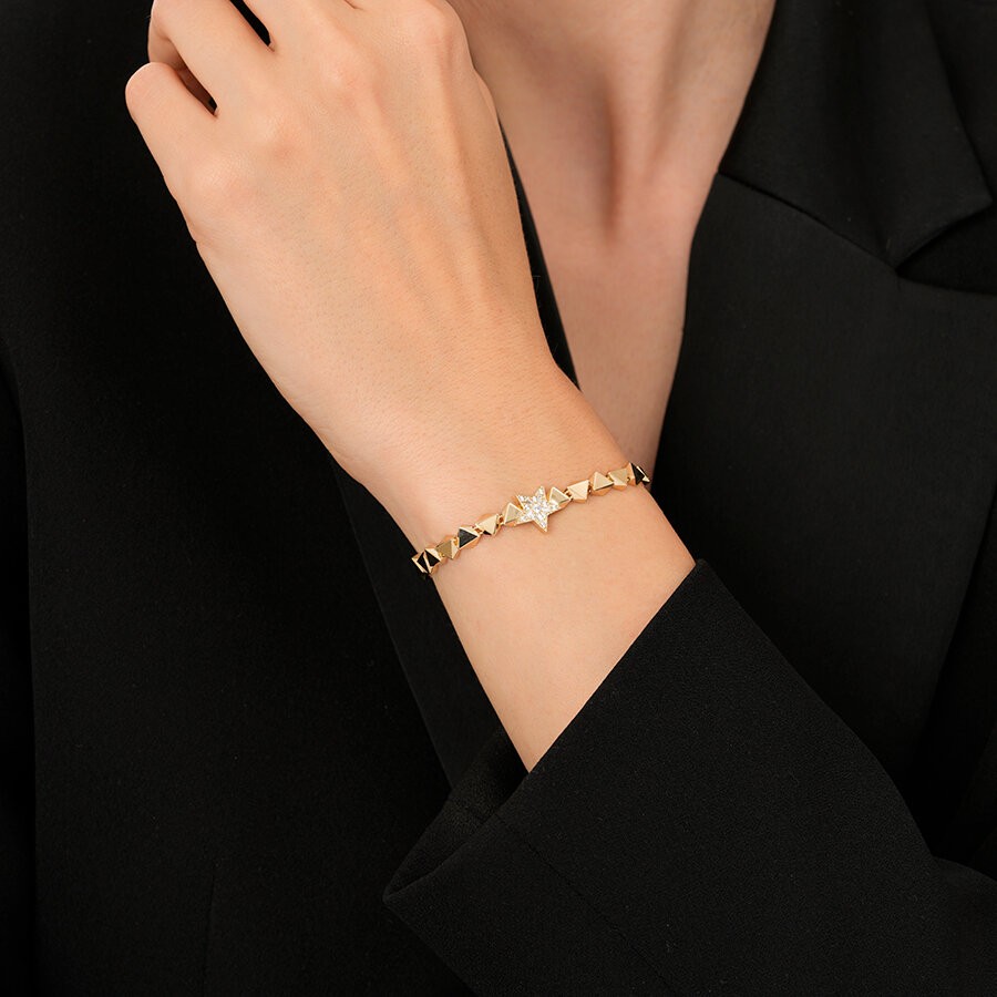 Asimetrik yıldız detaylarıyla tasarlanan bu altın bileklik, modern ve özgün bir şıklık sunar. Hem günlük kullanıma hem de özel anlara uyum sağlayarak stilinize enerjik ve zarif bir dokunuş katar.