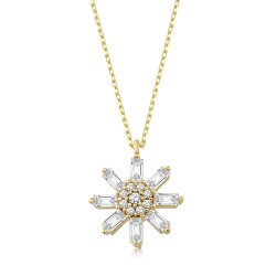 Altın Baget Çiçek Kolye, şıklığın anahtarını taşıyan zarif bir takıdır. Bu kolye, baget kesimli taşlarla süslenmiş çiçek motifine sahiptir. Hem günlük hayatta hem de özel davetlerde şıklığınızı tamamlayacak bir aksesuardır. Altın Baget Çiçek Kolye ile her zaman tarzınızı ön plana çıkarabilirsiniz.