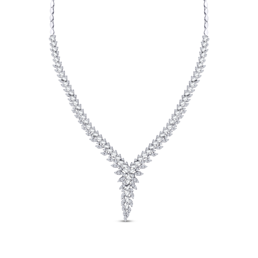 Baget taşların şıklığını sade formlarla buluşturan bu gerdanlık, zarafetiyle öne çıkar. Işıltıyı seven ama sadelikten vazgeçmeyenler için özel olarak tasarlanmıştır.