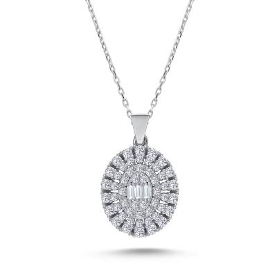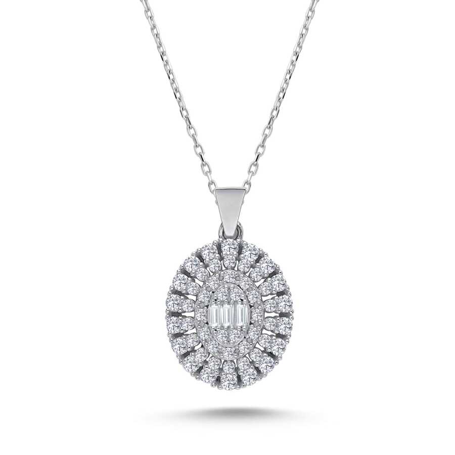 Altın Baget Taşlı Oval Kolye T19