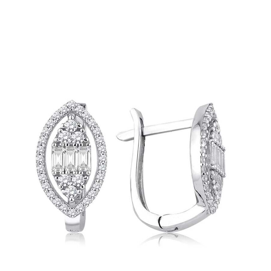 Altın Baget Taşlı Oval Küpe T70