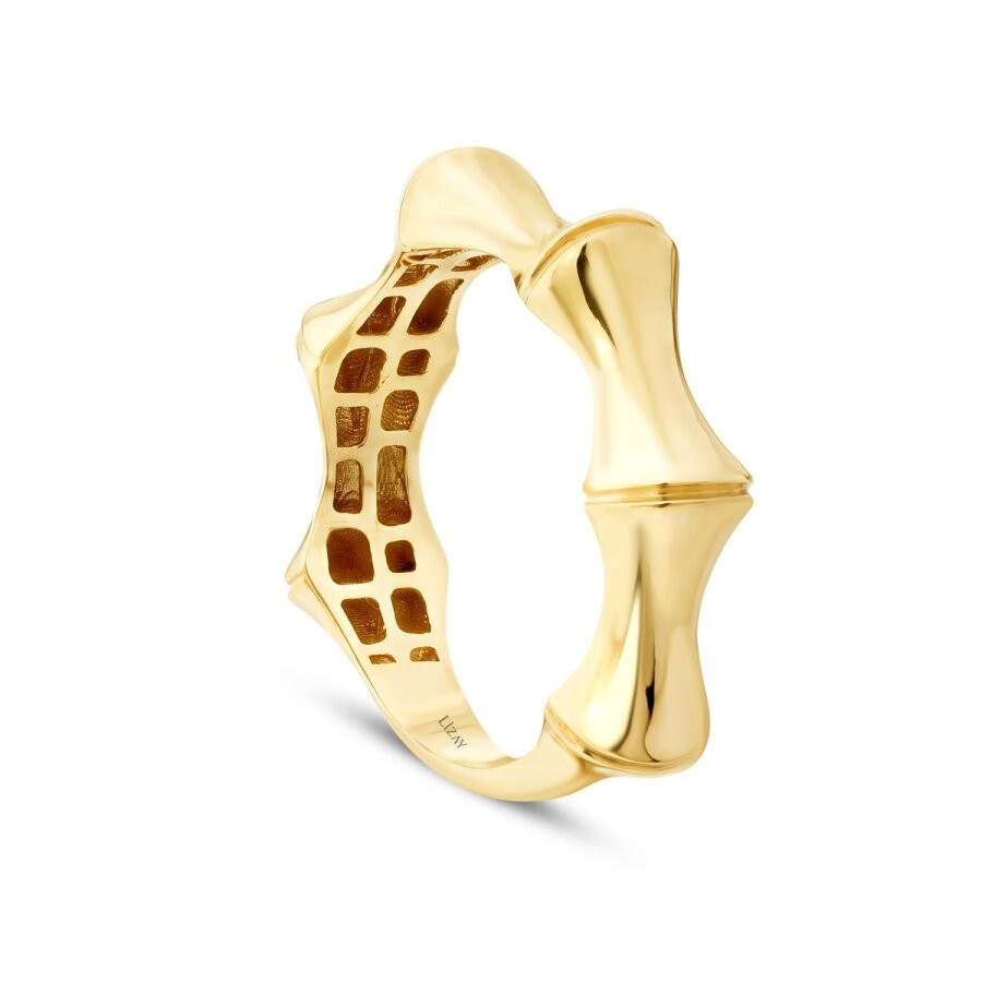 Altın Bambu Desenli Yüzük, doğadan ilham alan bambu dokusuyla sade ve şık bir görünüm sunar. Zamansız tasarımı sayesinde her stile uyum sağlayan bu özel yüzük, stilinize doğal ve sofistike bir dokunuş katıyor. Günlük kullanım için ideal, zarif bir aksesuar!