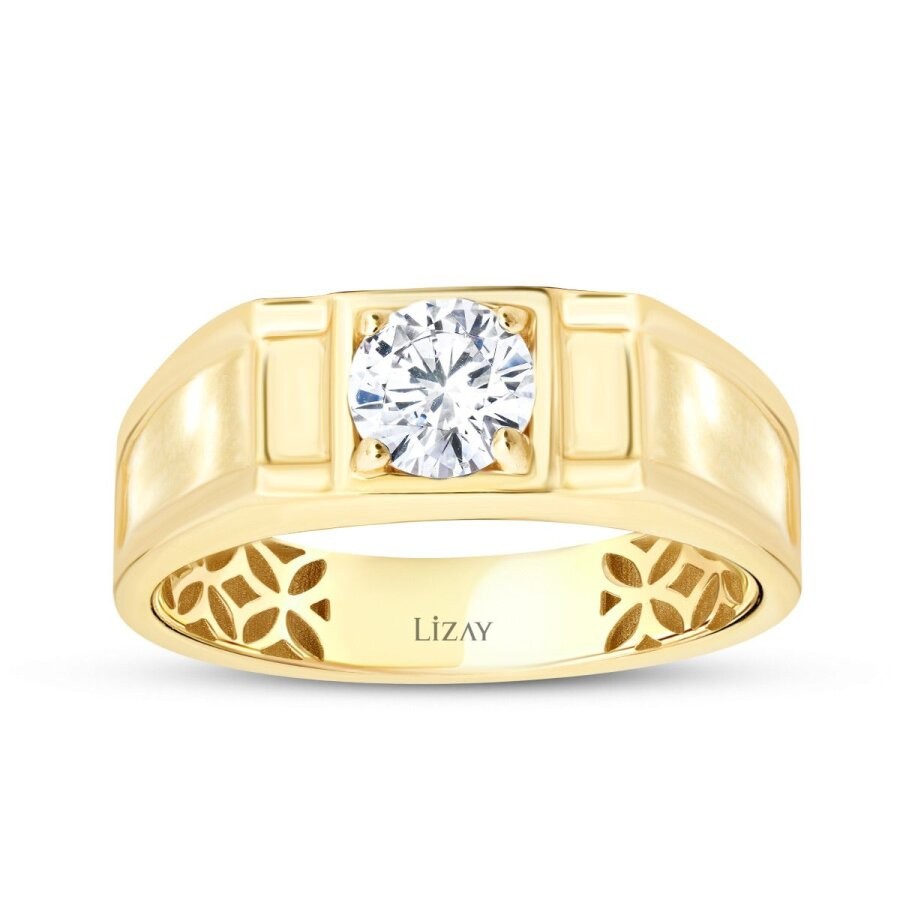 Altın Beyaz Taşlı Erkek Yüzük