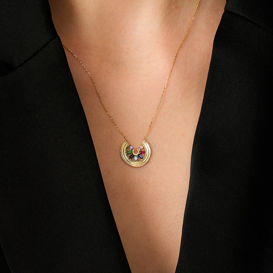 Renklerin neşeli buluşması, altının asil zemini üzerinde adeta bir bahar hikâyesi anlatıyor. Her taş farklı bir duyguyu fısıldarken bütünlük içinde göz alıcı bir uyum yaratıyor. Hayata tutkuyla bakanlara zarif bir armağan. Enerjisiyle stilinize canlı bir nefes katıyor.