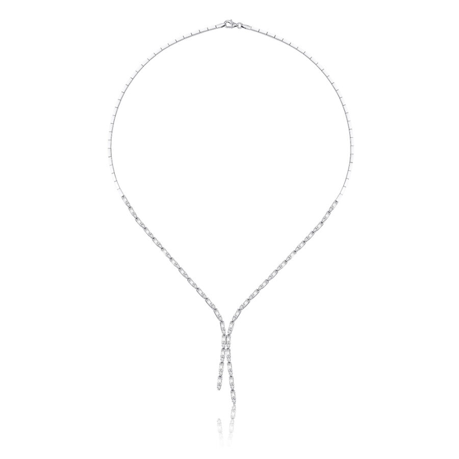 Baget formun yalın çizgilerle buluştuğu bu zarif tasarım, boynunuzda modern bir zarafet sunar. Düz geçişli formu, sade kombinlere güçlü bir dokunuş kazandırırken klasik şıklığı sevenlerin vazgeçilmezi olmaya adaydır.