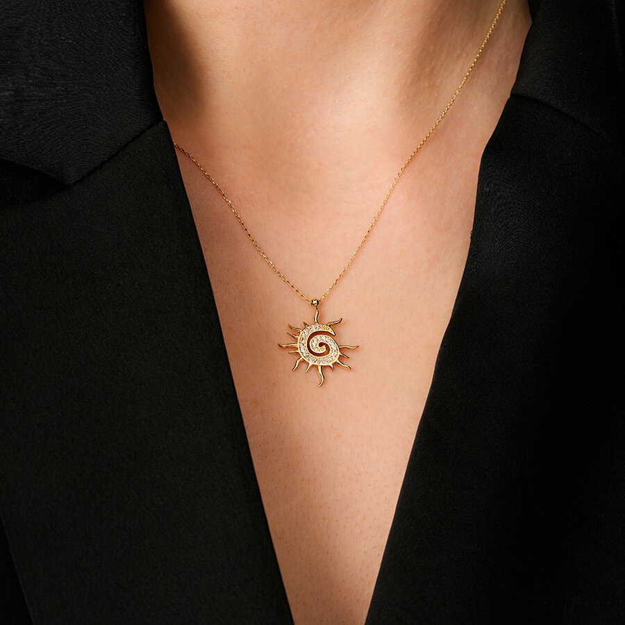 Altın Güneş Taşlı Trend Kolye T9481