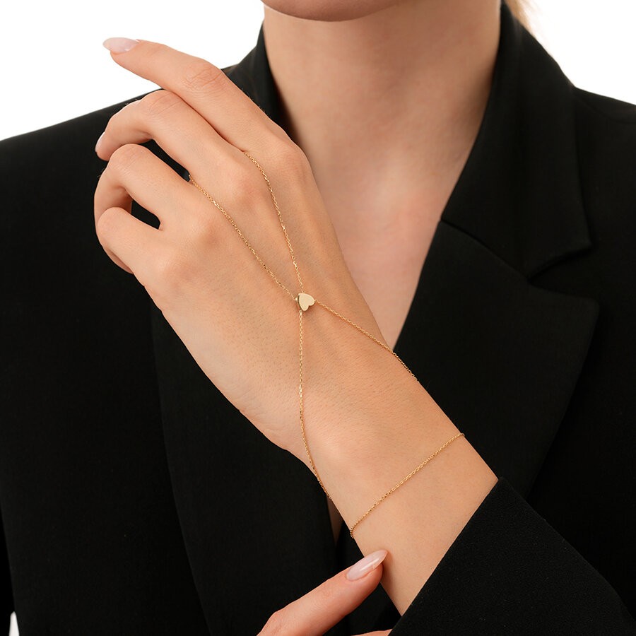 Kalp figürlü bu altın şahmeran bileklik, sevgi ve zarafeti stilinize taşır. Hem günlük kullanıma hem de özel anlara uyum sağlayan ince tasarımıyla anlamlı ve şık bir dokunuş sunar.