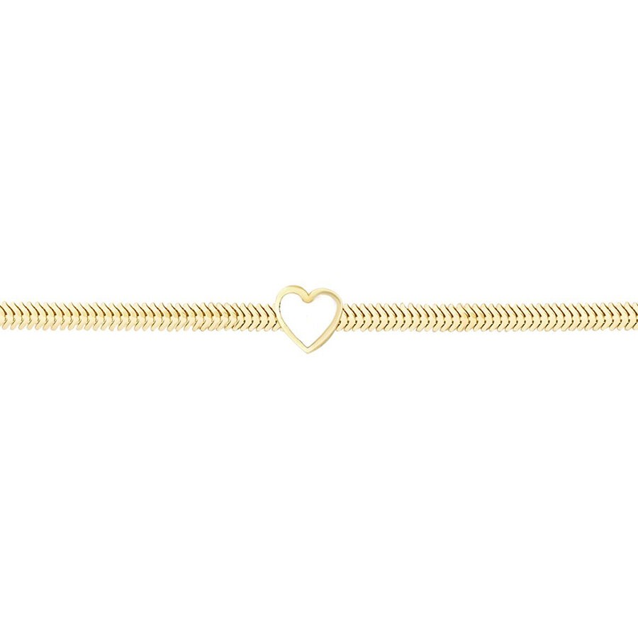 Altın Kalpli Balık Sırtı bileklik zincir detayıyla zarafeti ve sevgi dolu bir dokunuşu bir arada sunuyor. Günlük şıklığınıza romantik bir ışıltı katarken, özel anlarınızda da anlamlı bir tamamlayıcı oluyor.