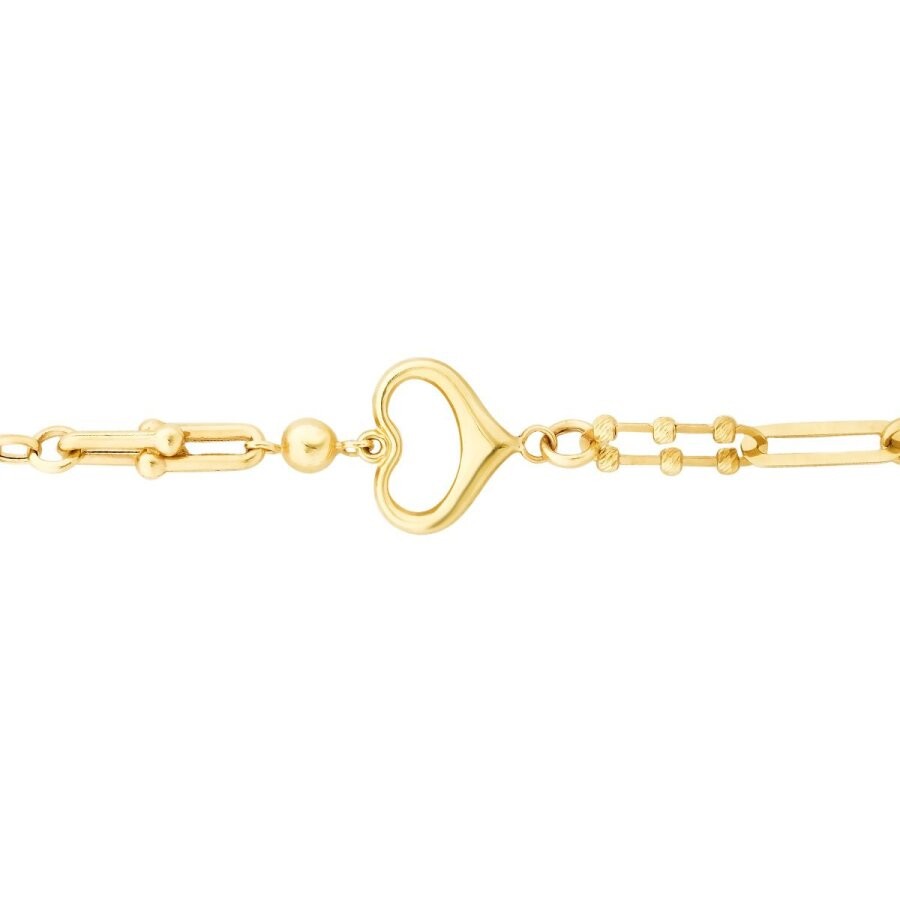 Kalpli zincir formuyla tasarlanan bu altın bileklik, romantik bir dokunuşu maskülen şıklıkla birleştirir. Günlük kullanımda farklı bir detay arayanlar için idealdir.