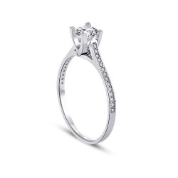Yan taşlarla desteklenmiş bu model, klasik tektaş stiline zarif bir ışıltı ekler. Modern ve romantik bir görünüm sunan bu tasarım, özel anlara anlam katar.