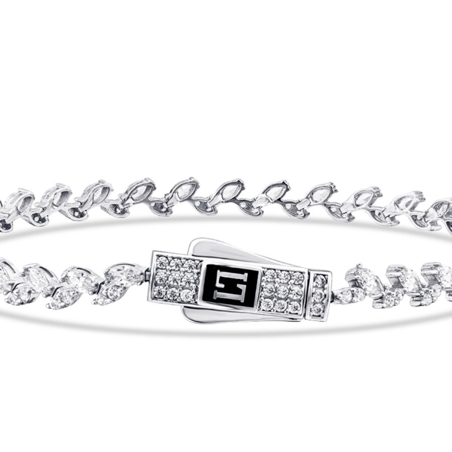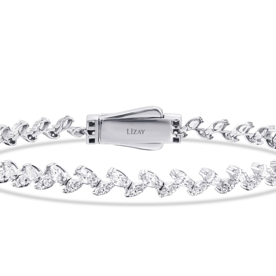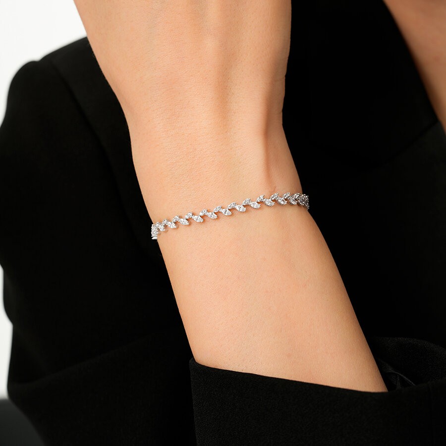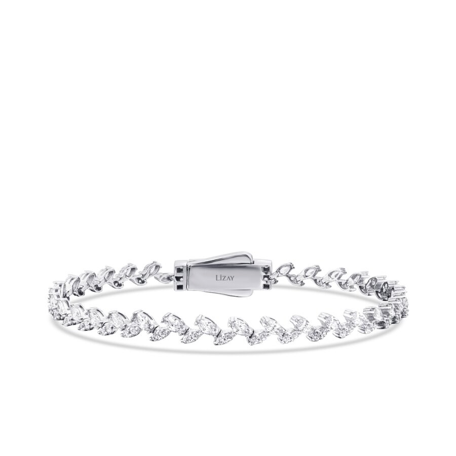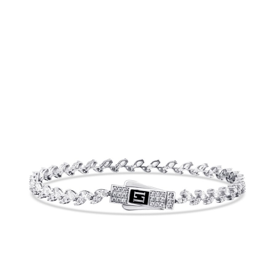 Fonksiyonelliğin lüks bir sanat eserine dönüştüğü bu tasarımda, özel klips mekanizması aynı zamanda bilekliğin en değerli mücevheri görevini görüyor. Işıltılı taşlarla çevrelenen bu detay, tasarıma modern ve teknik bir zarafet katıyor. Hem güvenli kullanımı hem de göz kamaştıran estetiği ile gün boyu bileğinizden çıkarmak istemeyeceğiniz bir parça.