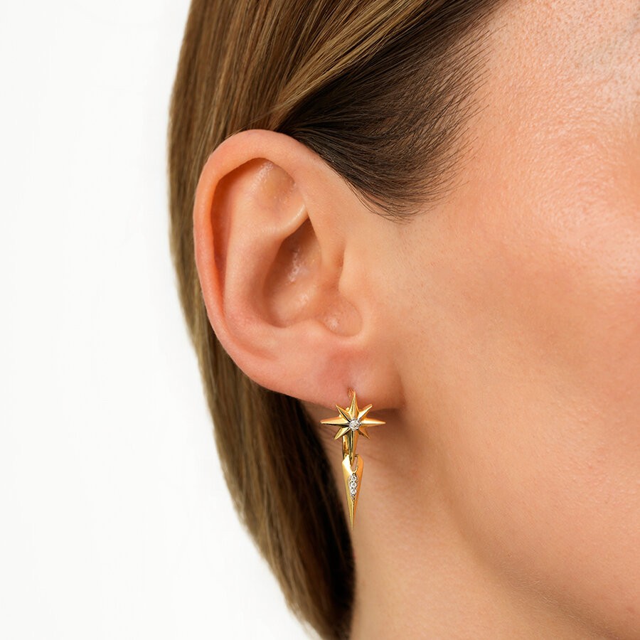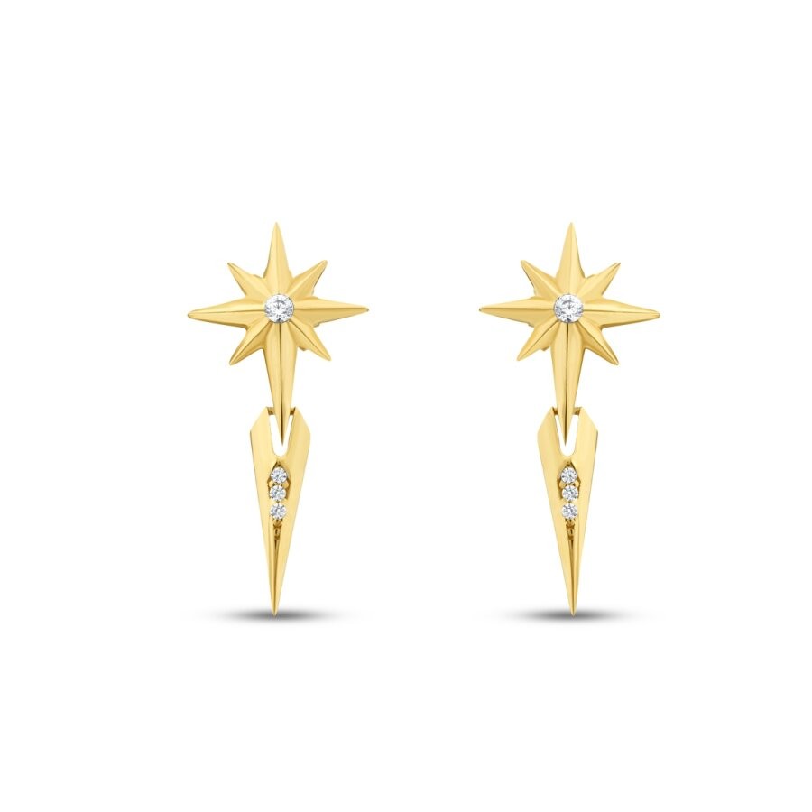 Yol gösteren bir ışık gibi parlayan Kuzey Yıldızı figürü, altının sıcaklığıyla kulaklarınızda hayat buluyor. Işıltısıyla karanlığı aydınlatan, hikayesi olan çok özel bir tasarım.
