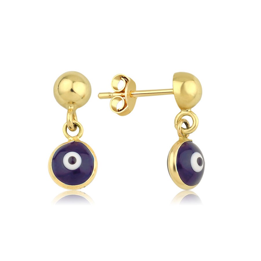Altın Lacivert Nazar Sallantılı Çocuk Küpe T4069