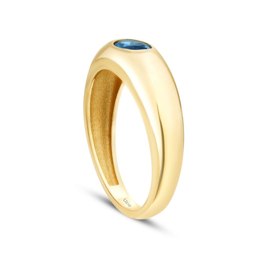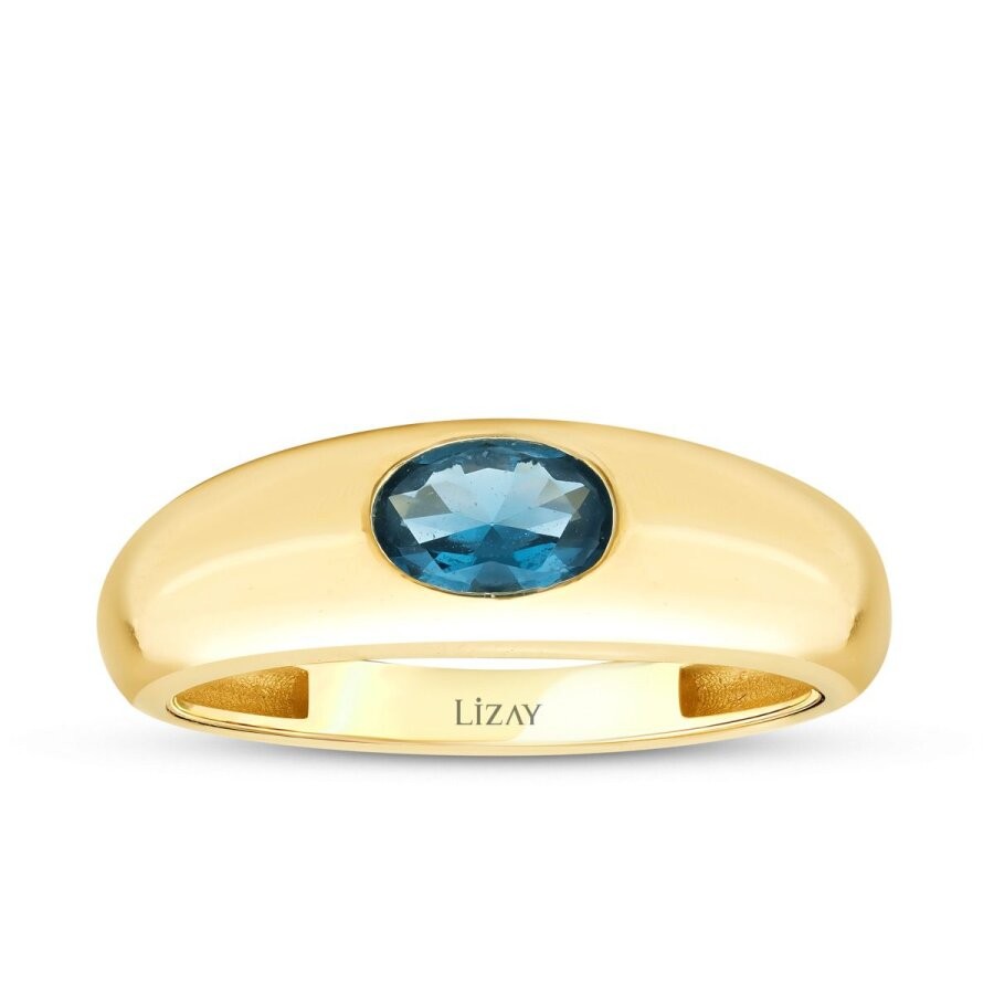 Altın Mavi Taşlı Bombeli Yüzük