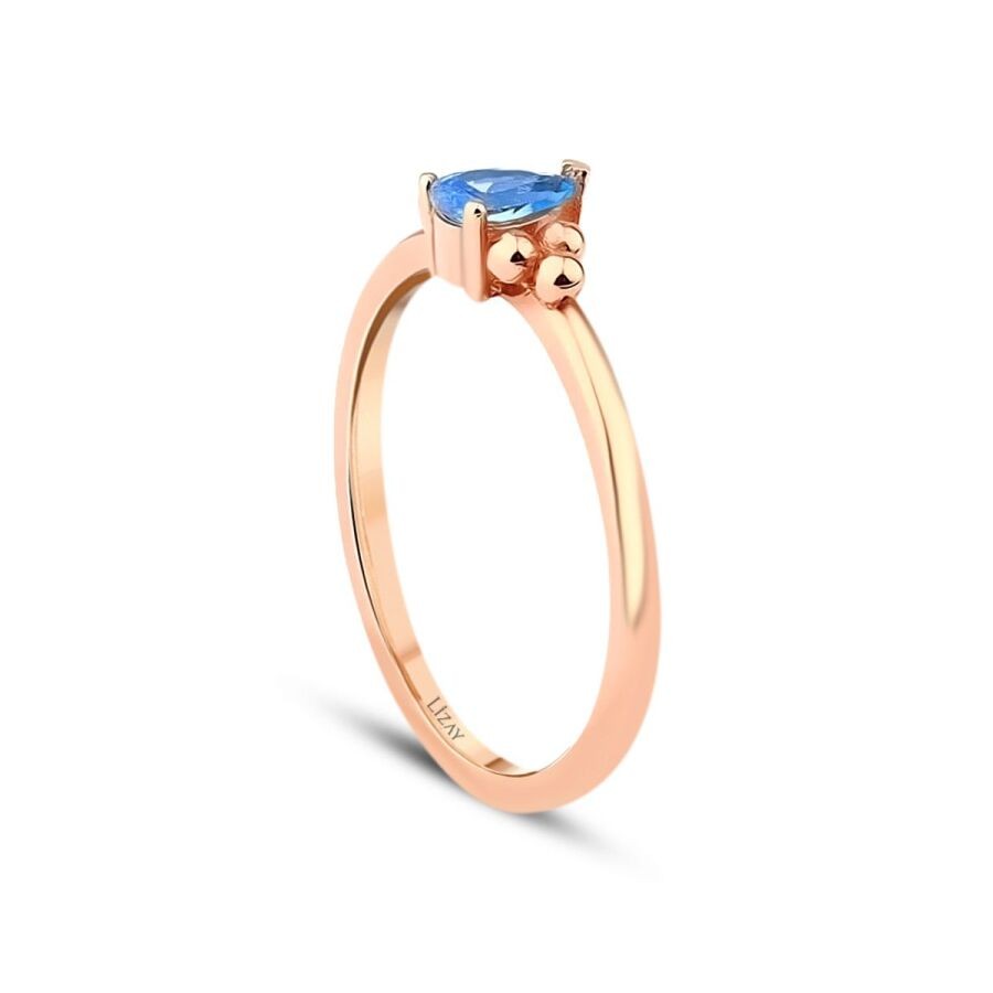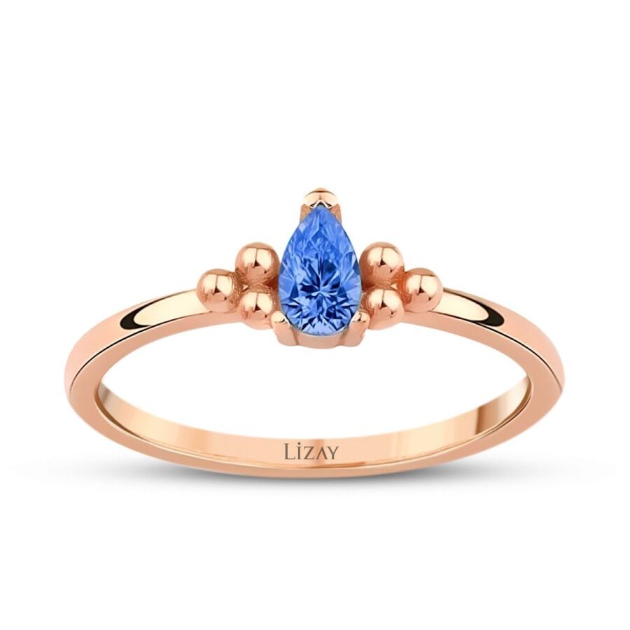 Altın Mavi Taşlı Damla Yüzük T2913