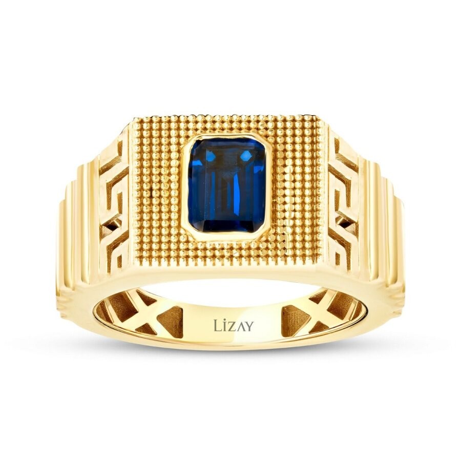 Altın Mavi Taşlı Erkek Yüzük
