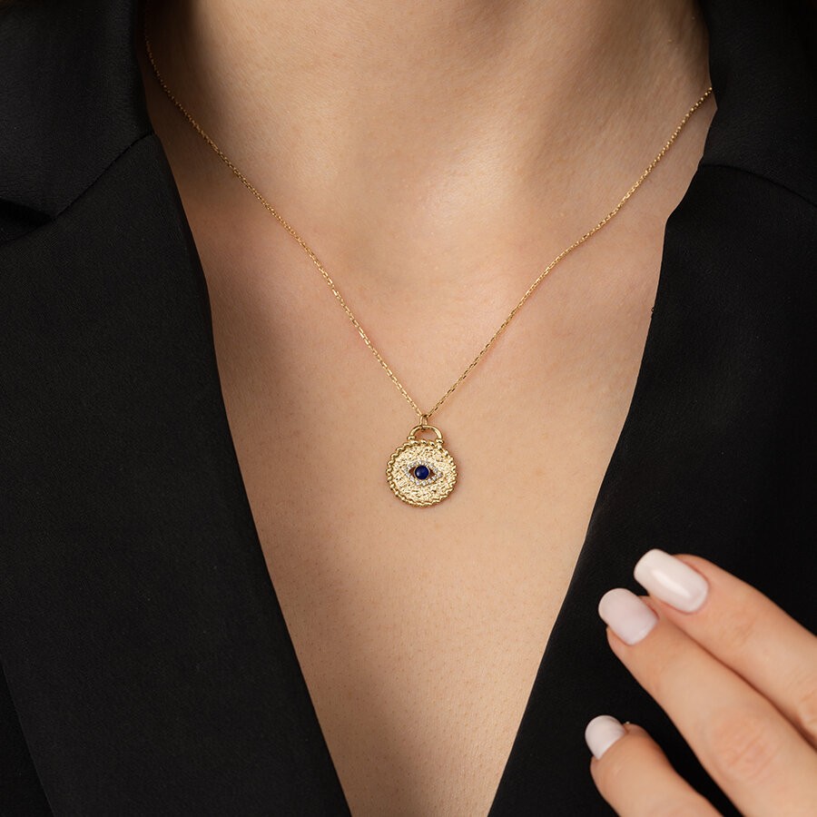 Altın Mavi Taşlı Göz Kolye