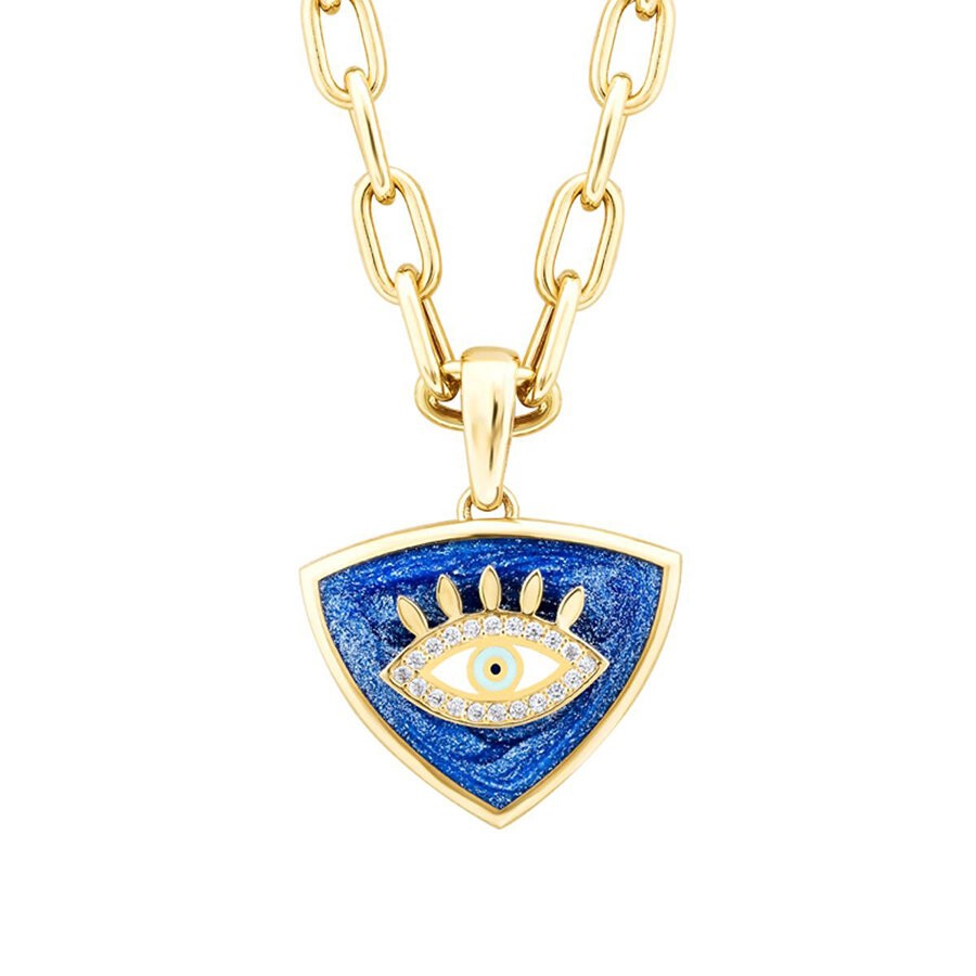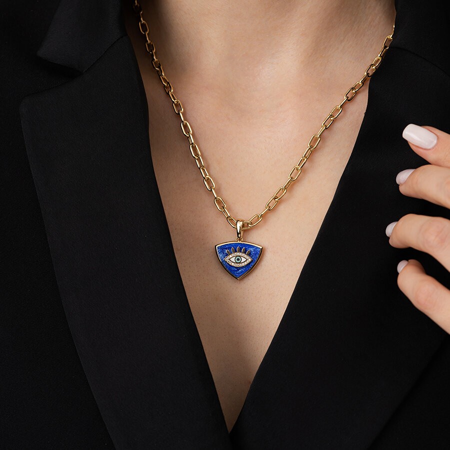 Altın Mineli Göz Madalyon Kolye, stilinize hem güçlü bir şıklık katıyor hem de kötü enerjilere karşı koruyucu bir sembol taşıyor. Modern tasarımıyla günlük ve özel anlarınıza ışıltı ve anlam katıyor.