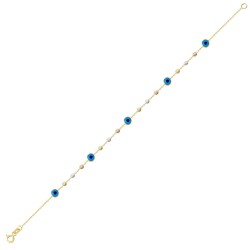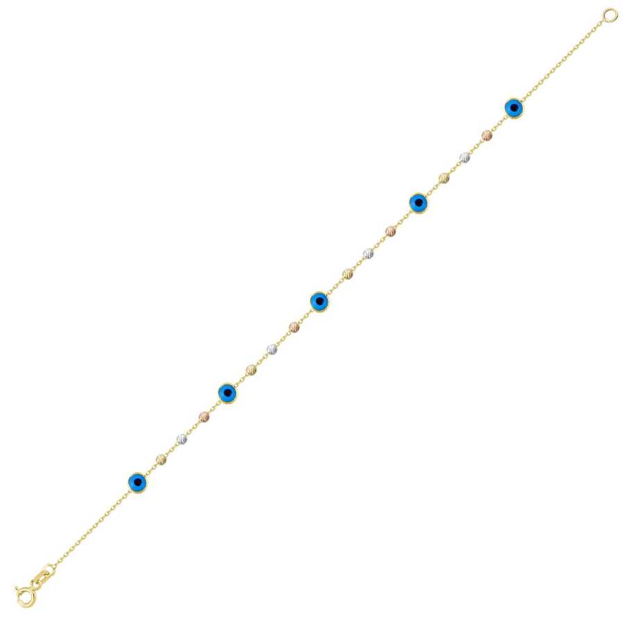 Altın Nazar Boncuklu Bileklik, zarif ve şık bir tasarıma sahip. Nazar boncuklu detaylarıyla dikkat çeken bu bileklik, her türlü kıyafetinize uyum sağlayacak. Kendinizi kötü enerjilerden korumak için ideal bir seçim olan bu bileklik, hem şıklığınızı tamamlar hem de size güven verir.