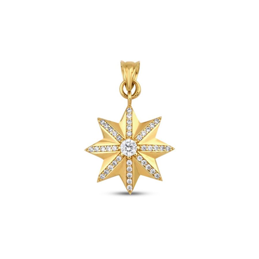 Altın Orta Taşlı Yıldız Kolye Ucu T5175