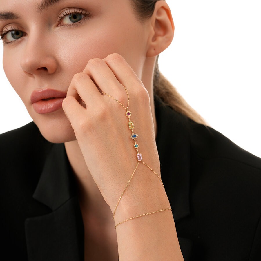 Renkli taş detaylarıyla hareketlenen bu altın şahmeran bileklik, enerjik ve modern bir şıklık sunar. Günlük kullanıma ve özel anlara uyum sağlayan zarif tasarımıyla stilinize canlılık katar.