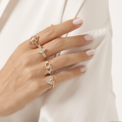 Altın Renkli Taşlı Üçgen Yüzük T3988