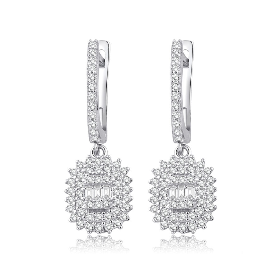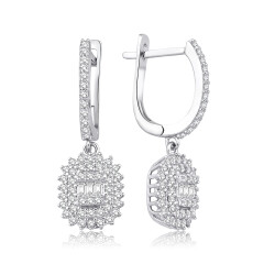 Sarkan formu ve göz alıcı taşlarıyla bu küpe, hareket ettikçe ışıltısını yansıtır. Modern dokunuşlarla zarif bir ifade sunar.