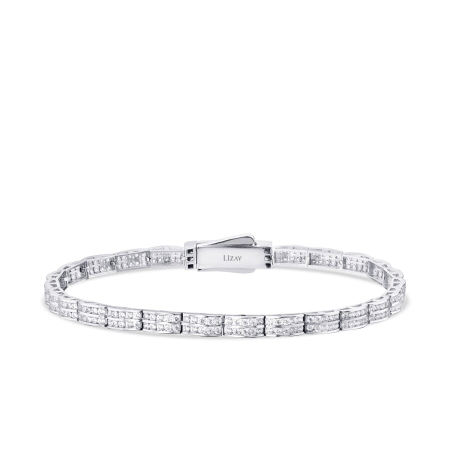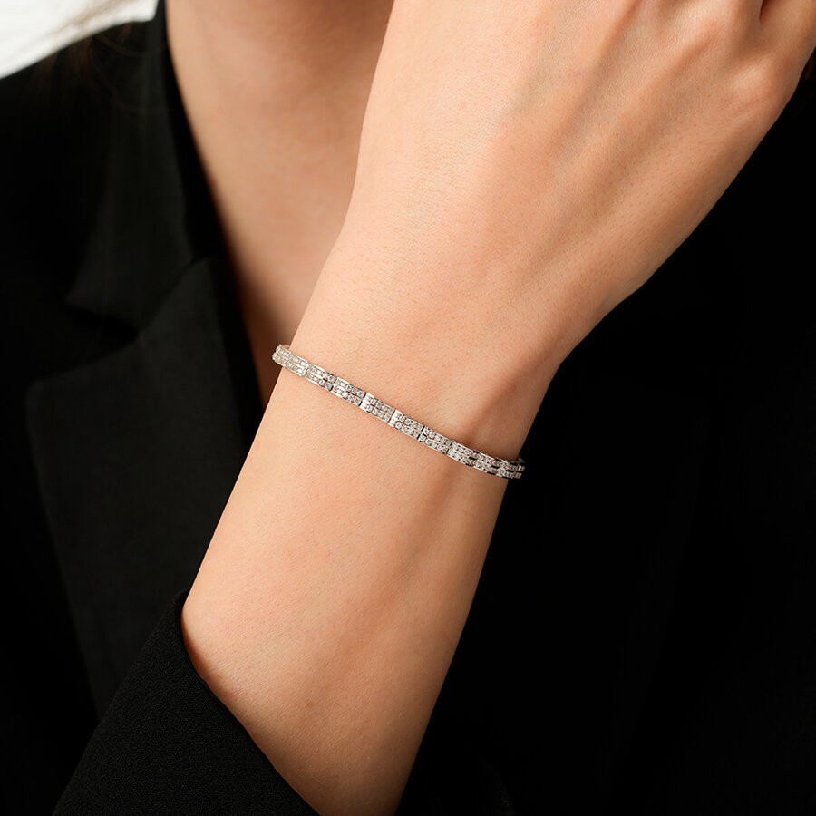 Zarafetin en saf haliyle işlendiği bu parça, taşların birbirini takip eden kusursuz ritmiyle bileğinizi ince bir ışık halesi gibi sarıyor. Altının taşları kucaklayan yapısı, mücevherin hem dayanıklılığını hem de görsel zenginliğini artırıyor.