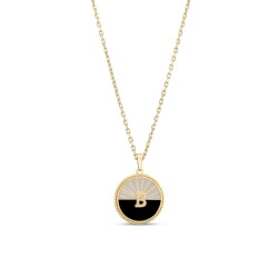 Altın Siyah Beyaz Mineli Harf Kolye T1143