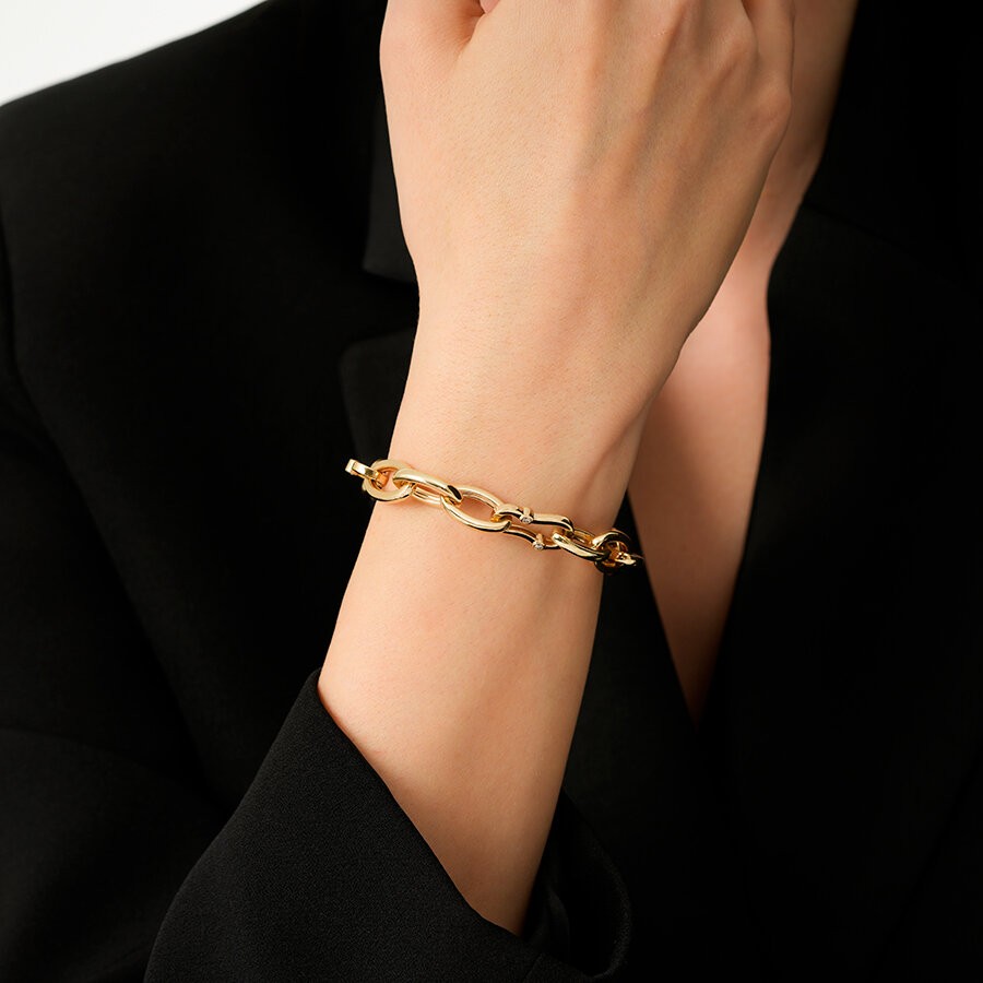 İnce bir işçilikle hazırlanan zincir halkaları arasına titizlikle yerleştirilen taşlar, her hareketinizde ışığı yakalayarak zarif bir parıltı oyunu sunuyor. Altının klasik dokusuyla taşların modern ışıltısı arasındaki bu denge, mücevherinizde hem asalet hem de dinamizm yaratıyor. Gündelik şıklığınızı bir üst seviyeye taşımak isteyenler için ideal bir imza parçası.
