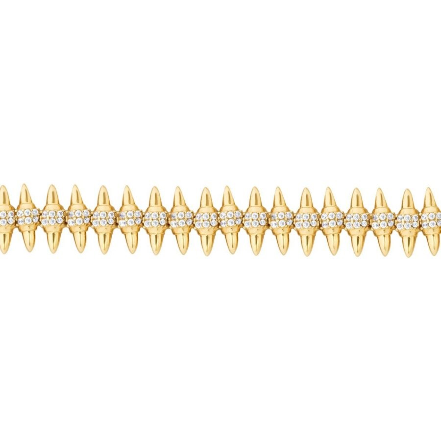 Taş detaylarıyla süslenen bu altın çivi bileklik, cesur ve şık bir tarz sunar. Günlük kullanıma ve özel anlara uyum sağlayan modern tasarımıyla stilinize özgünlük ve ışıltı katar.