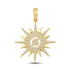 Göz alıcı taş kesimiyle tasarlanmış altın taşlı güneş kolye ucu, stilinize zarif bir dokunuş katacak. Bu şık ve dikkat çekici aksesuar, herhangi bir kıyafeti tamamlamak için mükemmel bir seçimdir. Siz de şıklığınızı ön plana çıkarmak ve gözleri üzerinize çekmek için bu muhteşem kolye ucunu tercih edebilirsiniz.