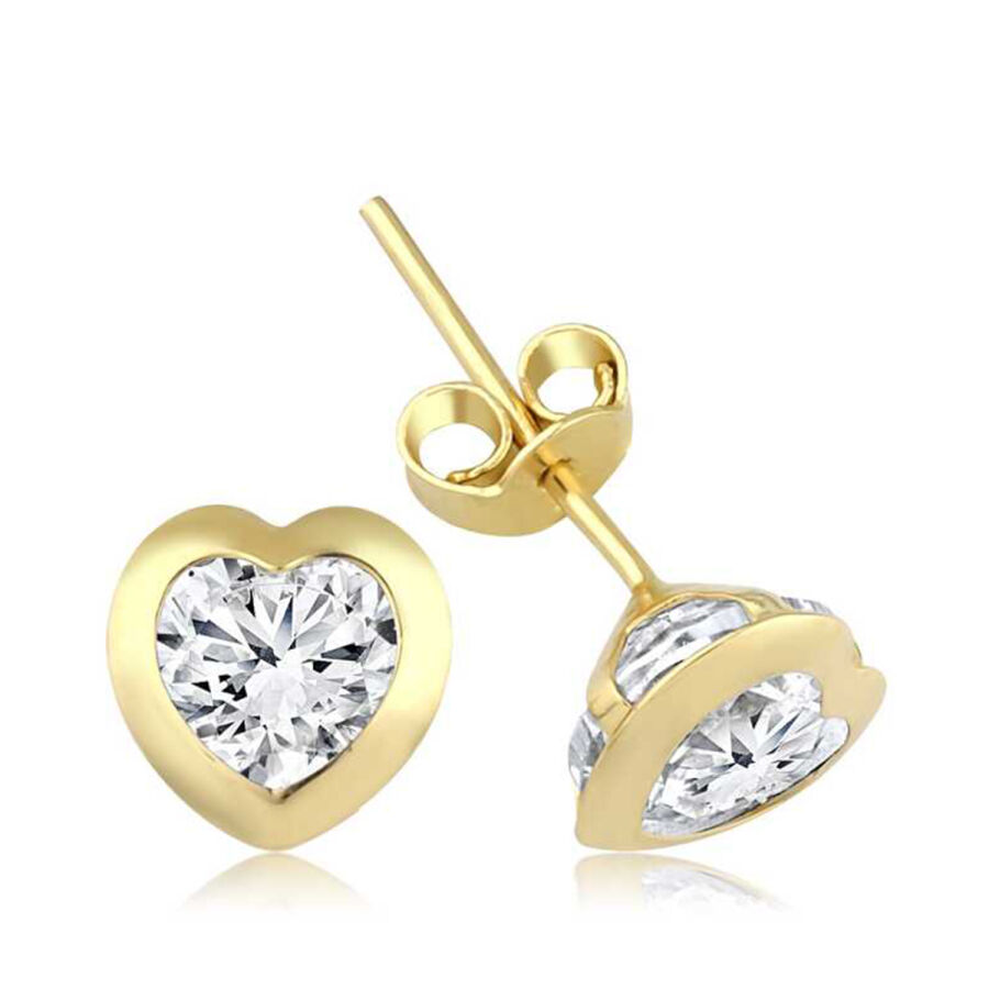 Altın Taşlı Kalp Küpe