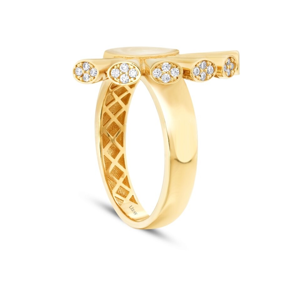 Minenin duygu dolu rengi, taşların berrak parıltısıyla buluşarak zarif bir hikâye kuruyor. Altın zemin üzerindeki ince işçilik, yüzüğe derinlik ve sanatsal bir ifade kazandırıyor. Her bakışta yeni bir ayrıntı fısıldayan bu tasarım, özgün ruhların vazgeçilmez mücevheri olmaya aday.