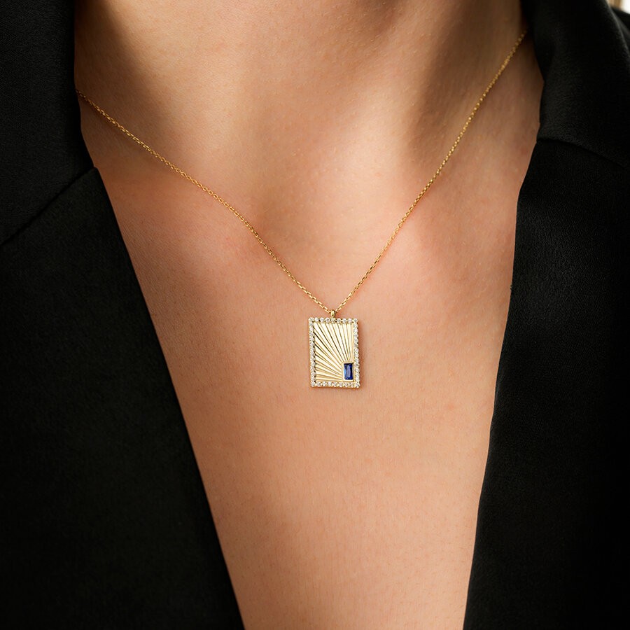 Minimal çizgilerle şekillenen plaka, taşların zarif parıltısıyla derinlik kazanıyor. Sadeliğin içindeki ustalık, bu kolyeyi her stile uyum sağlayan özel bir aksesuara dönüştürüyor. Sessiz ama etkili bir şıklık. Gün ışığında da gece zarafetinde de aynı incelik.