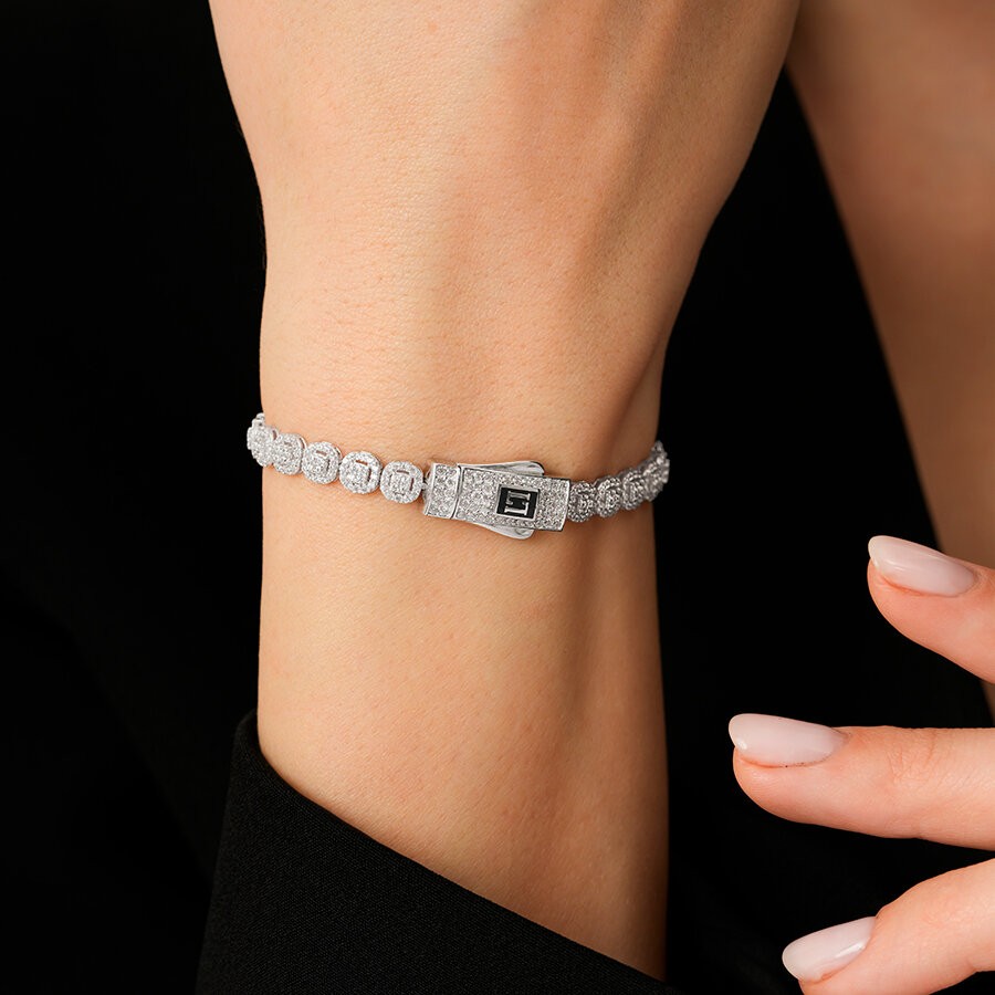 Geleceğin klasiklerini bugünden tasarlayan bu parça, alışılagelmiş formların dışına çıkarak özgün bir silüet sunuyor. Işıltılı taşların altın üzerindeki oyunbaz yerleşimi, dinamik bir stilin kapılarını aralıyor. Kendini şımartmak isteyen kadınlar için tasarlanan bu bileklik, özgünlüğünüzü pırıltıyla kutluyor.