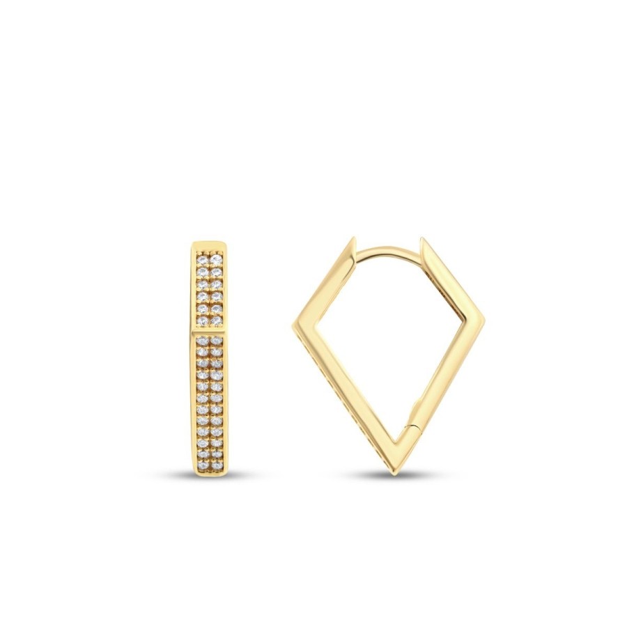 Altın Taşlı Üçgen Halka Küpe, zarif üçgen formu ve ışıltılı taş detaylarıyla modern tasarımı bir araya getiriyor. Geometrik şıklığı ve göz alıcı parlaklığıyla dikkat çeken bu küpe, hem günlük kombinlerinize hem de özel anlarınıza sofistike bir dokunuş katıyor. Zamansız ve etkileyici bir aksesuar!