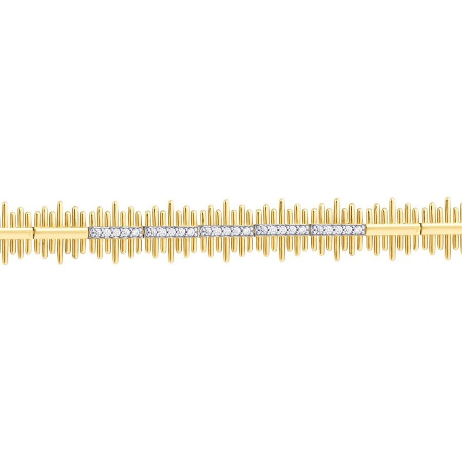 Taş detaylarıyla hareketlenen zikzak desenli bu altın bileklik, modern ve zarif bir şıklık sunar. Hem günlük kullanıma hem de özel anlara uyum sağlayarak stilinize ışıltı ve özgünlük katar.