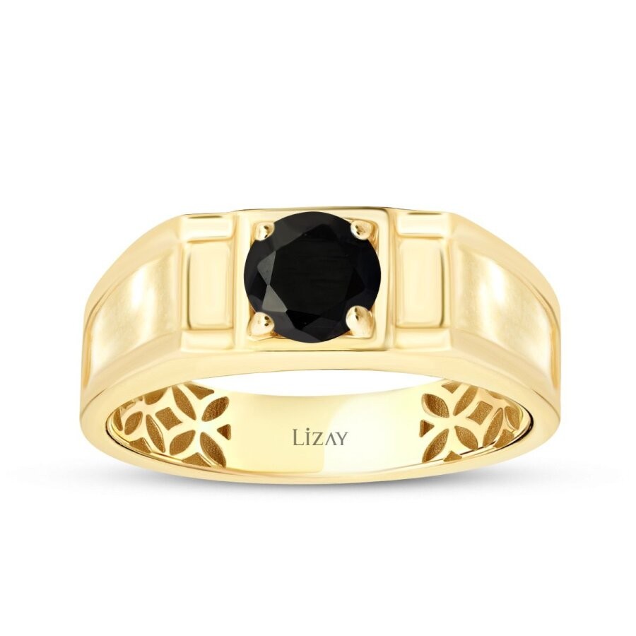 Altın Tek Siyah Taşlı Erkek Yüzük