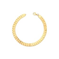 Pul desenlerinin ışıltılı dokusuyla tasarlanan bu bileklik, stilinize farklılık katar. Işığı yansıtan yüzeyi ve modern duruşuyla hem sade hem gösterişli kombinlere uyum sağlar. Hareketli bir görünüm yaratır.